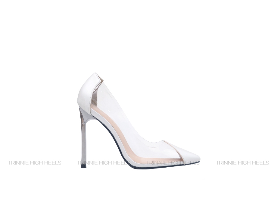 Sandal ngang mãnh gót metallic 11P Pu Trắng Bóng