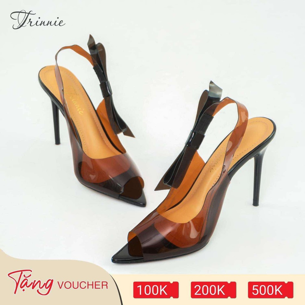 Sandal gót nhọn mũi nhọn mica nâu